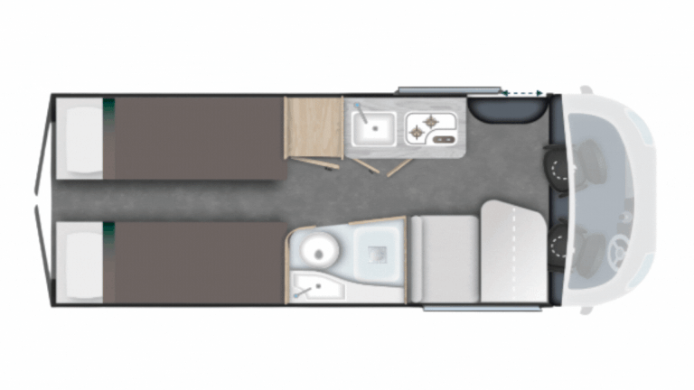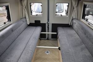 The highlight of this model is its versatile sleeping area. The V691 comes with two single beds at the rear that can easily be joined together thanks to a smart extension, creating a spacious king-size bed.